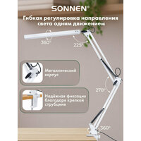 Купить Лампа настольная, светильник светодиодный led на струбцине для офиса и дома, 14 Вт, высота 70 см, Sonnen, 238498 с доставкой по всей России.