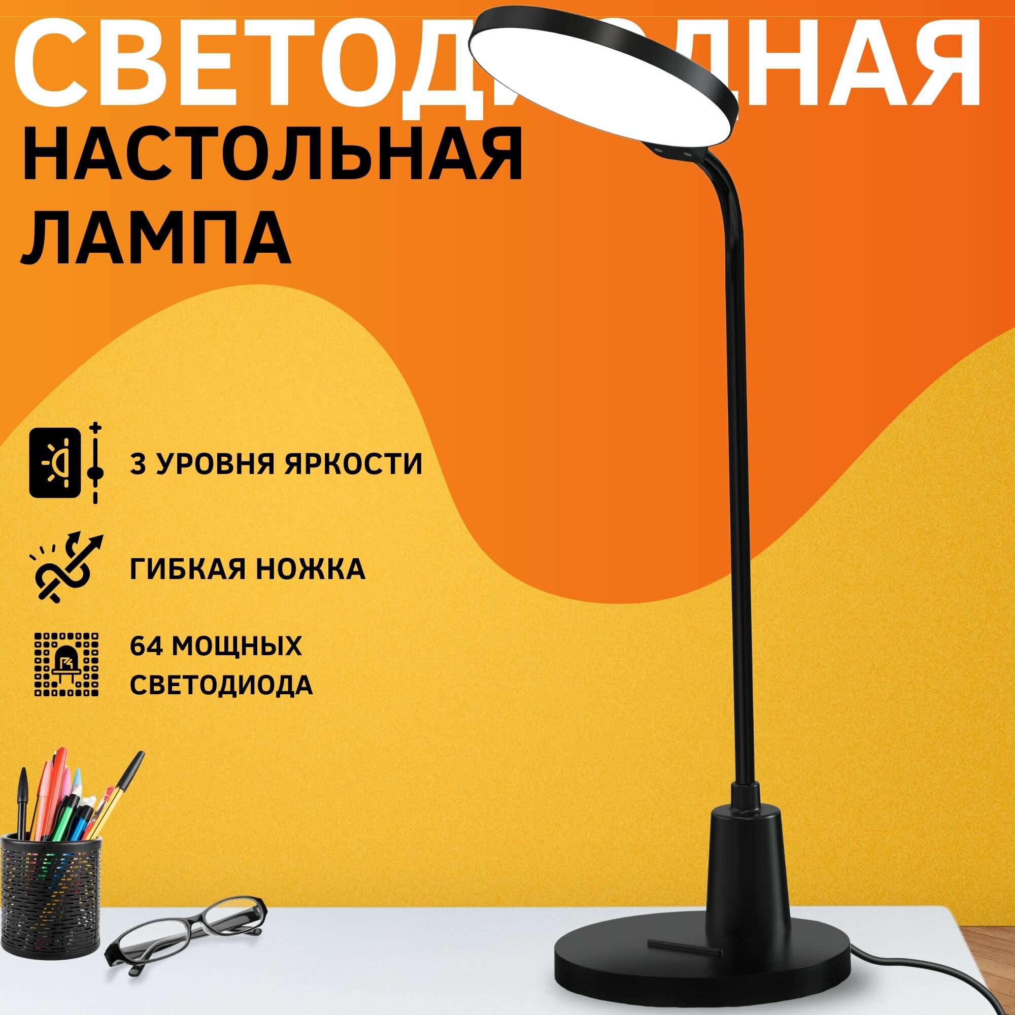 Купить Лампа настольная светодиодная черная круглая для школьника с доставкой по всей России.