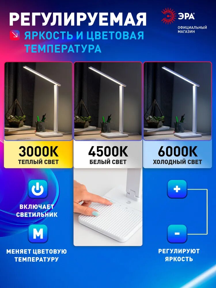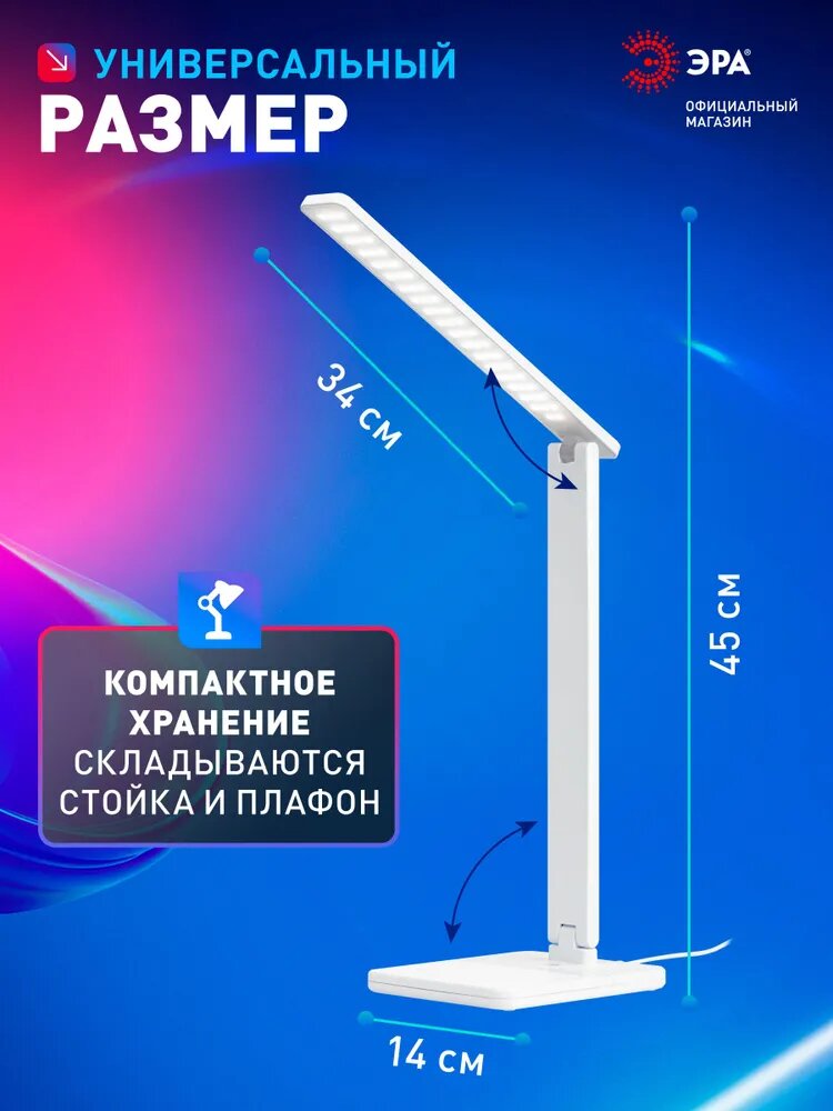 Лампа настольная светодиодная ЭРА NLED-520 для школьника сенсорная с диммером 3 режима, белый: сравнение цен, характеристики, фото, актуальное наличие и цены.