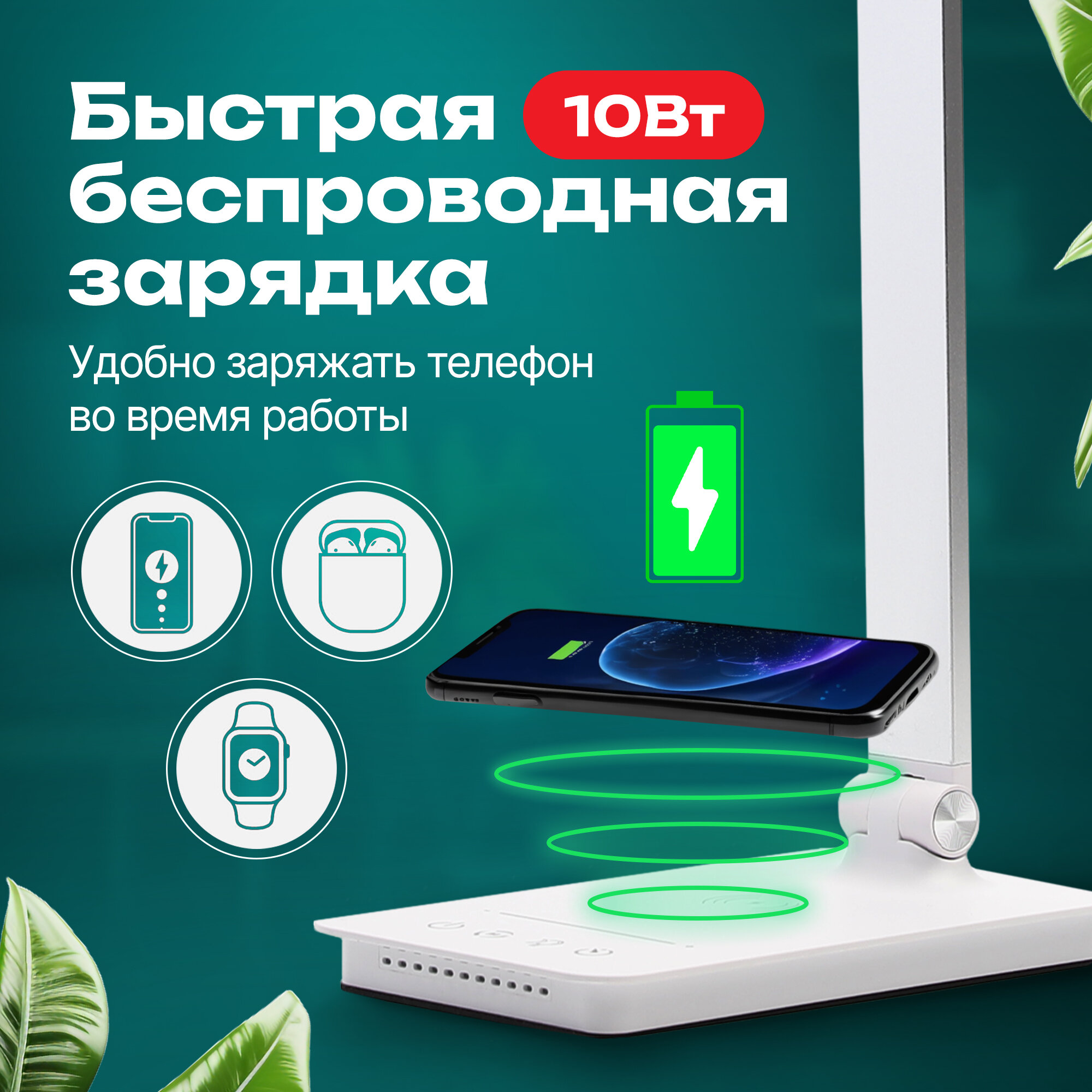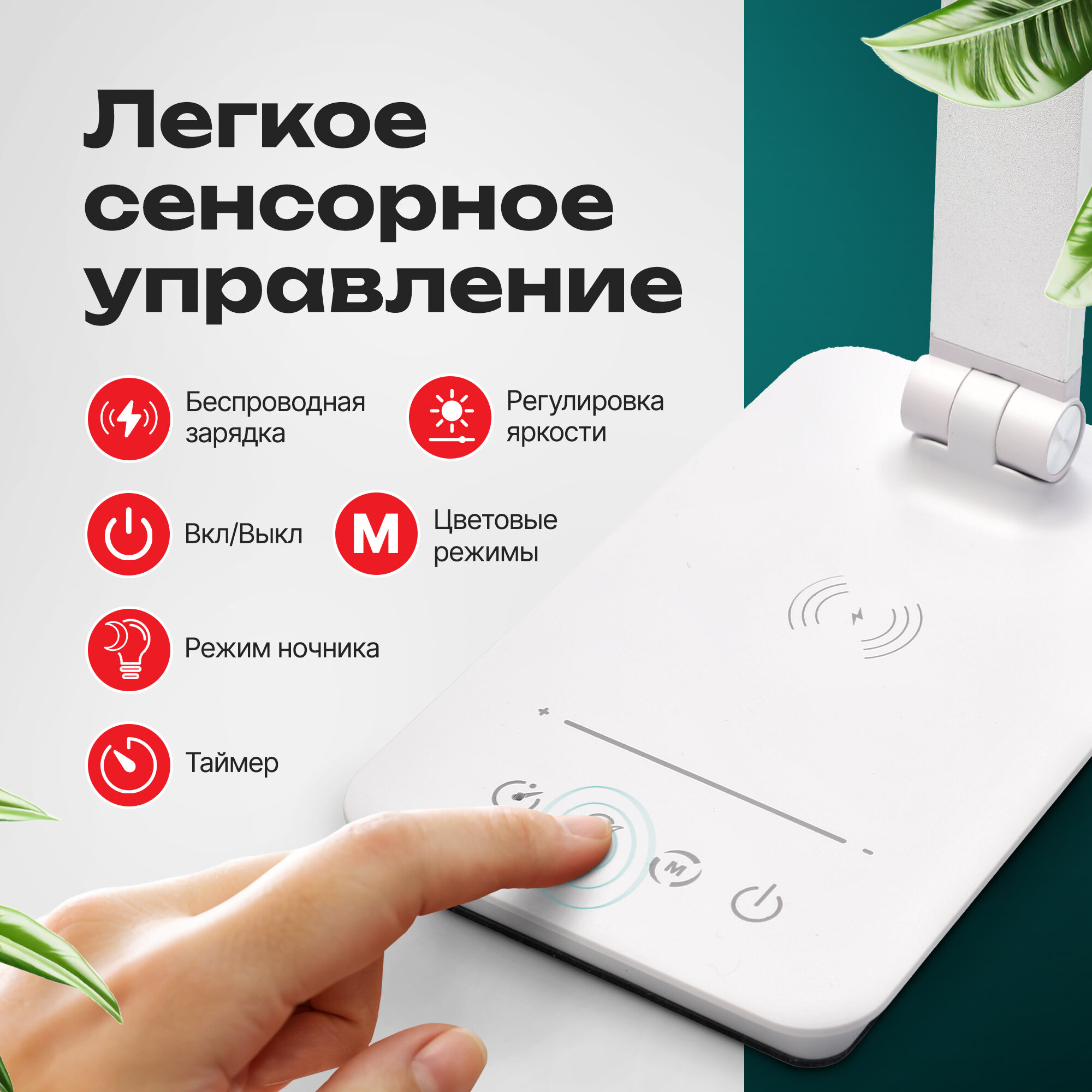 | Особенности | регулировка наклона и поворота плафона, регулировка яркости, режим ночника, с беспроводной зарядкой, складная конструкция |
