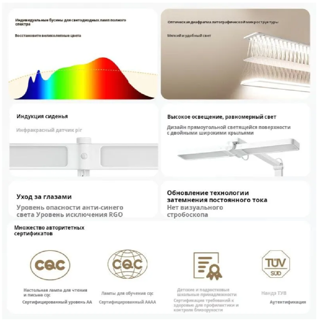 | Дополнительная информация | регулировка цветовой температуры 2700-6500K, съемный магнитный блок крепления с регулировкой 40°; совместимость с мониторами толщиной 0.1-3.2 см; в комплекте пульт ДУ, батарейки ААА (2 шт.), кабель питания USB Type-C |