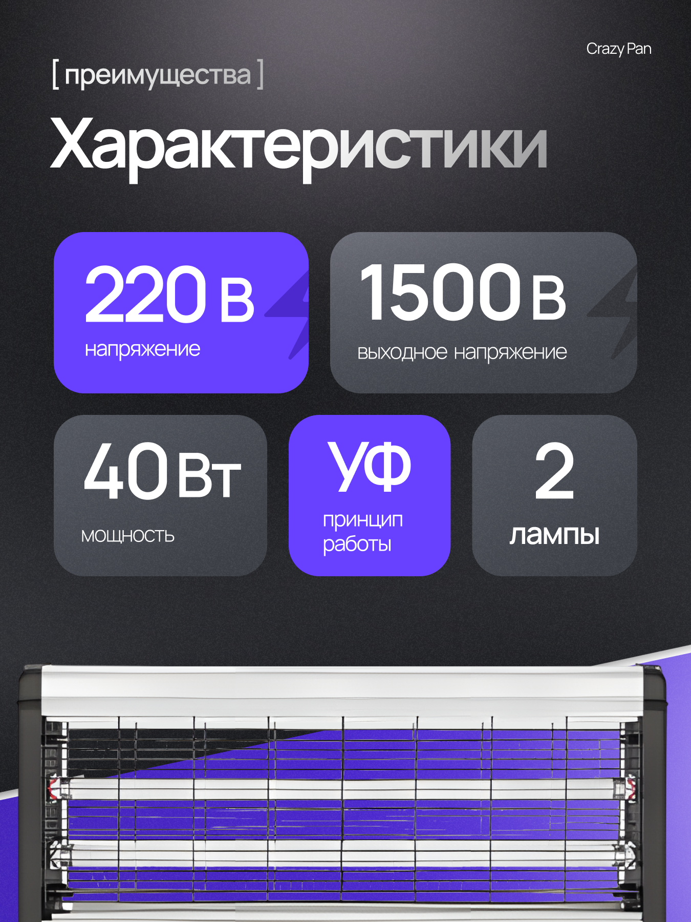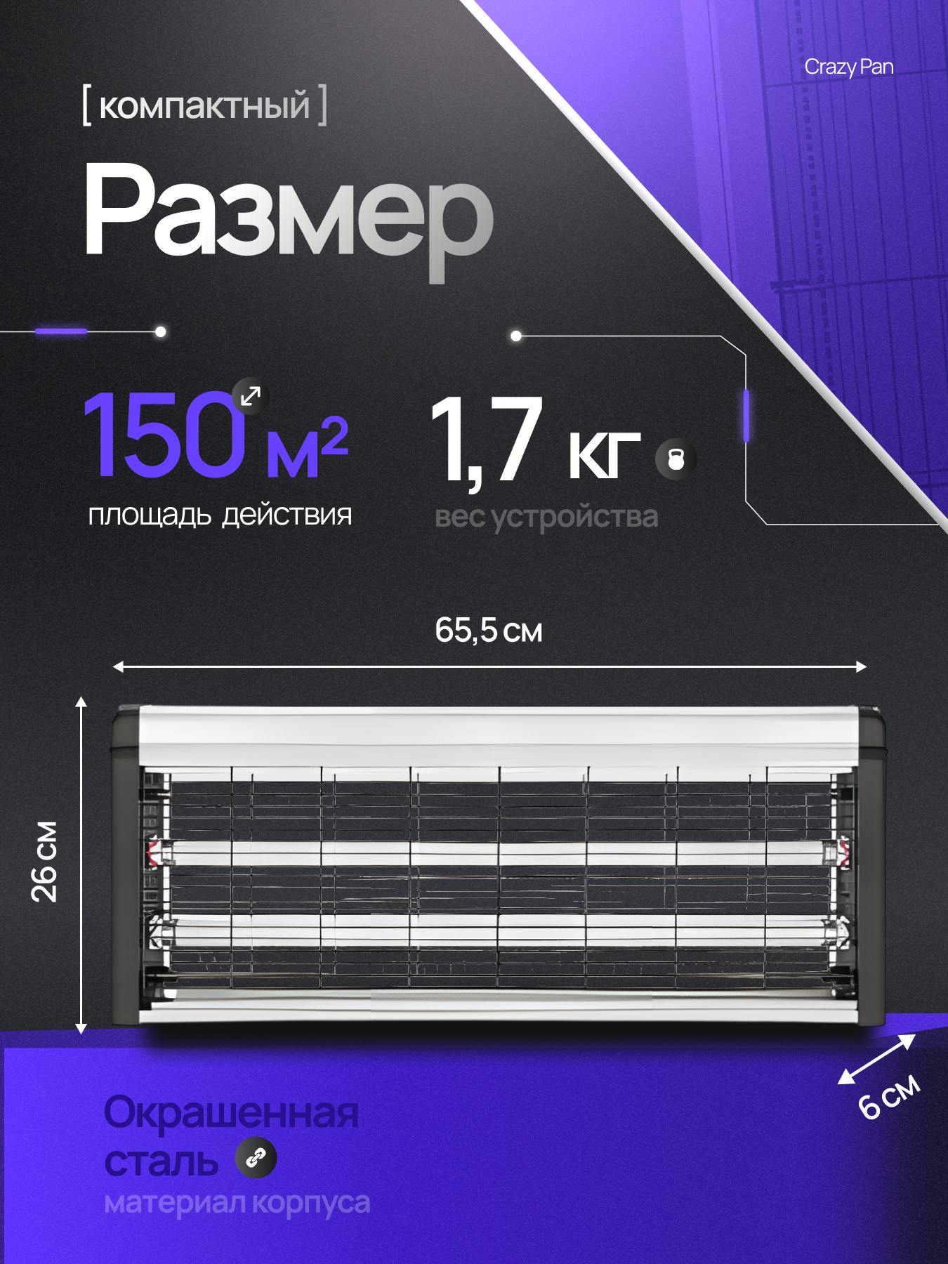 Лампа от комаров и насекомых Сrazy Pan CP-LIN150 ультрафиолетовая, 40Вт, площадь 150 м2, 220 В, цепь для подвешивания: сравнение цен, характеристики, фото, актуальное наличие и цены.
