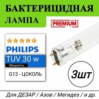 Лампа Philips TUV 30W - 3 штуки, бактерицидные, кварцевые , G13, без озона