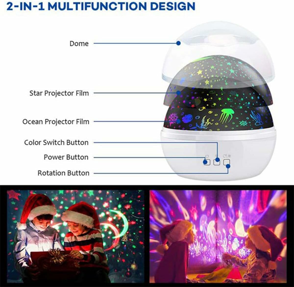 Лампа-проектор для неба, звездное небо, океан, ночник для детей, ночник-проектор с 2 проекционными пленками, 8 цветовых режимов, вращающийся на 360 градусов, перезаряжаемый звездный ночник (белый) (1 шт.)