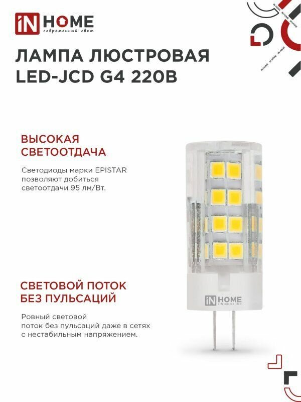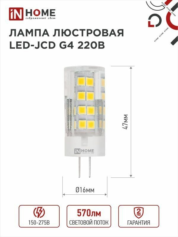 Купить Лампа светодиодная 10 штук LED-JCD 230В 6Вт G4 4000К 570Лм IN HOME с доставкой по всей России. Лампа светодиодная 10 штук LED-JCD 230В 6Вт G4 4000К 570Лм IN HOME: сравнение цен, характеристики, фото, актуальное наличие и цены.