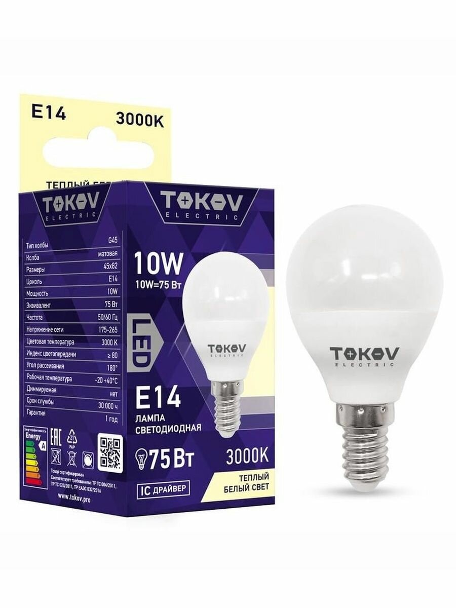 Купить Лампа светодиодная 10Вт G45 3000К Е14 176-264В (10 шт) TOKOV ELECTRIC TKE-G45-E14-10-3K с доставкой по всей России. Лампа светодиодная 10Вт G45 3000К Е14 176-264В (10 шт) TOKOV ELECTRIC TKE-G45-E14-10-3K: сравнение цен, характеристики, фото, актуальное наличие и цены.