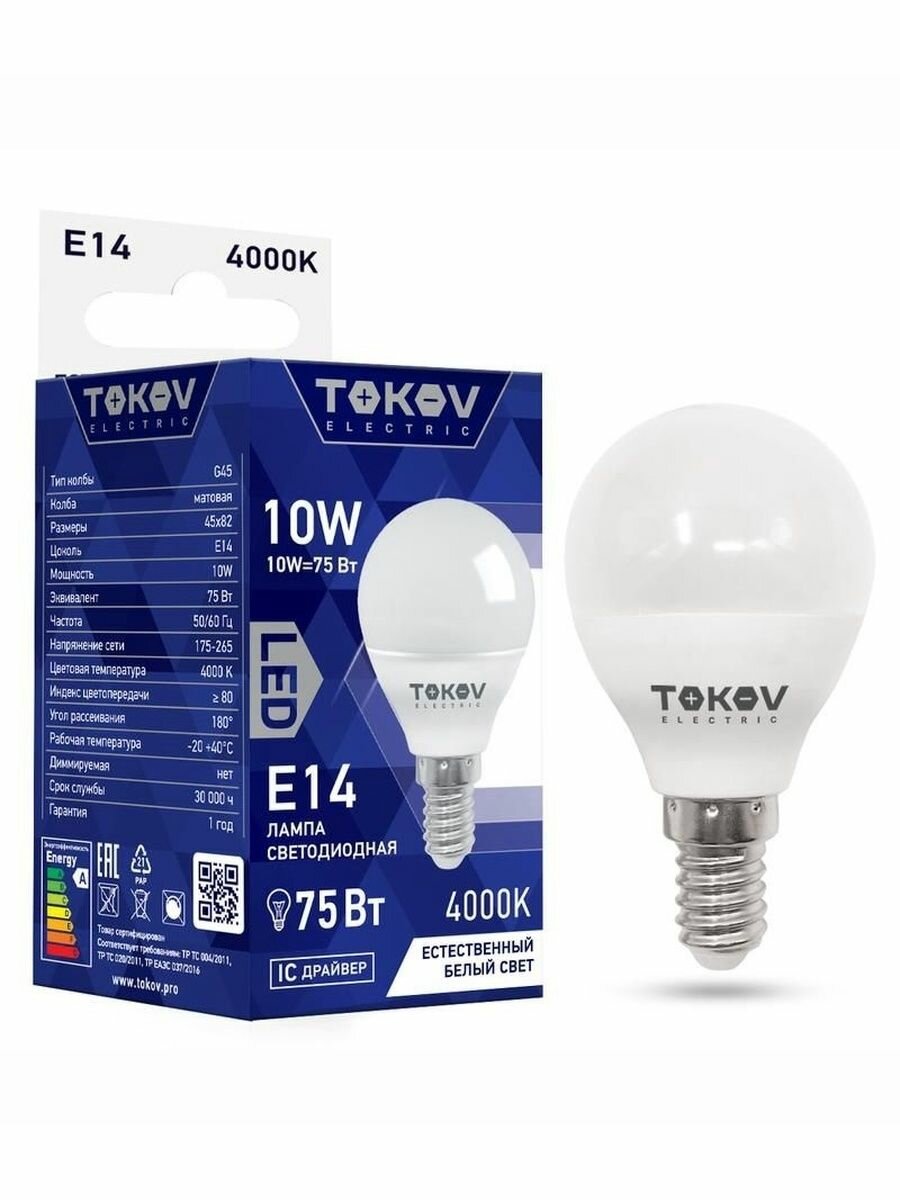 Купить Лампа светодиодная 10Вт G45 4000К Е14 176-264В (10 шт) TOKOV ELECTRIC TKE-G45-E14-10-4K с доставкой по всей России. Лампа светодиодная 10Вт G45 4000К Е14 176-264В (10 шт) TOKOV ELECTRIC TKE-G45-E14-10-4K: сравнение цен, характеристики, фото, актуальное наличие и цены.