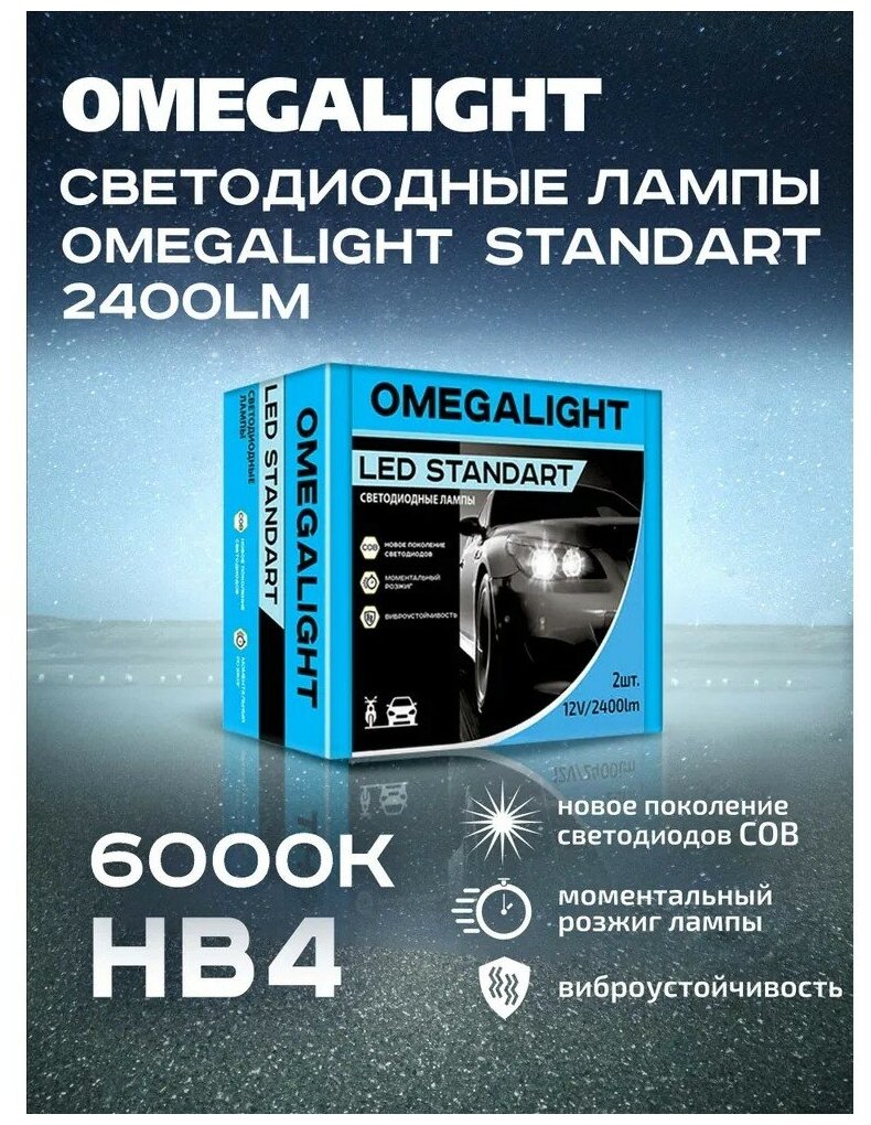 Лампа светодиодная 12V HB4 17W OMEGA LIGHT OMEGALIGHT STANDART 2 шт. картон OLLEDHB4ST-1 OMEGALIGHT OLLEDHB4ST1