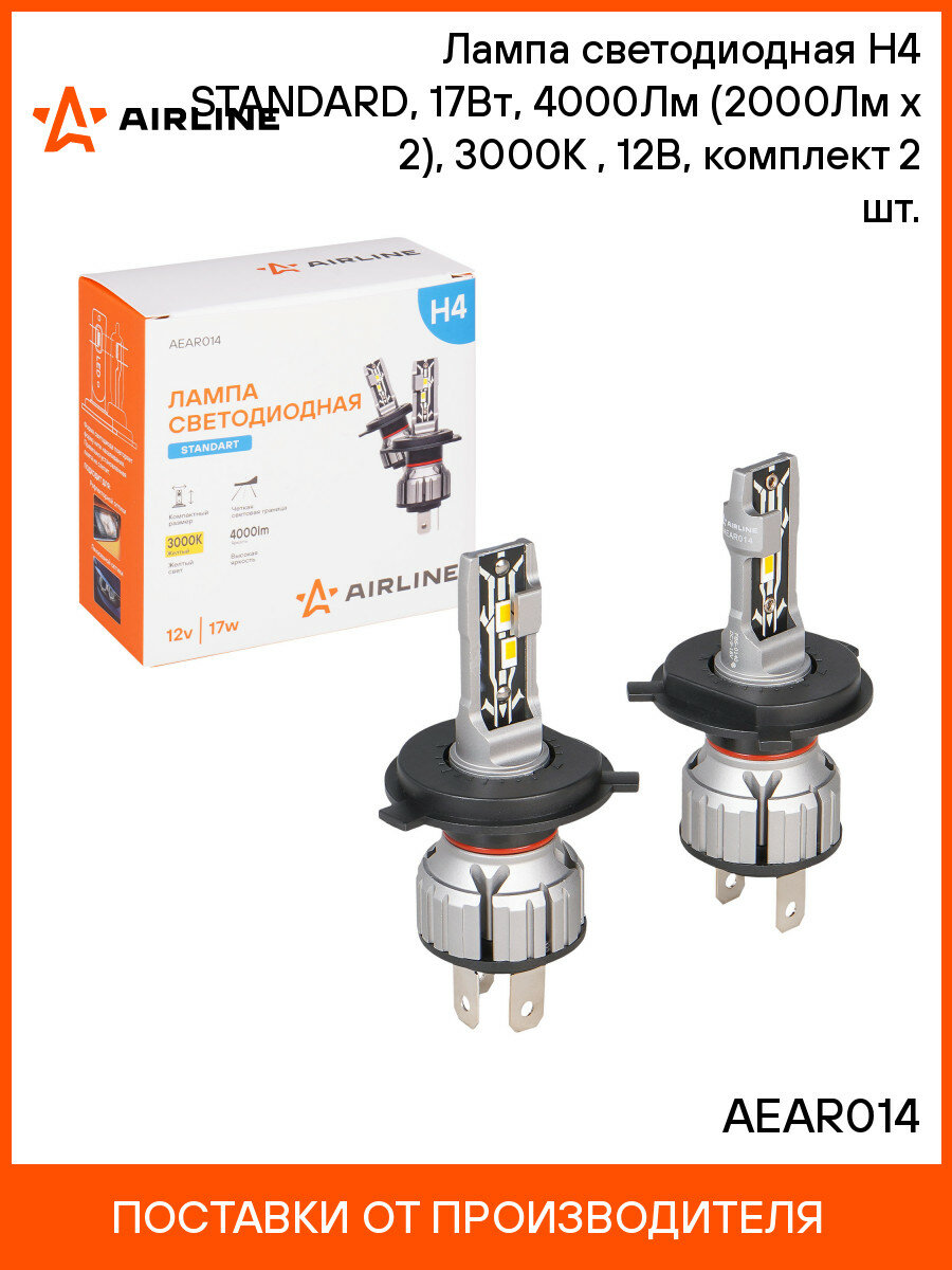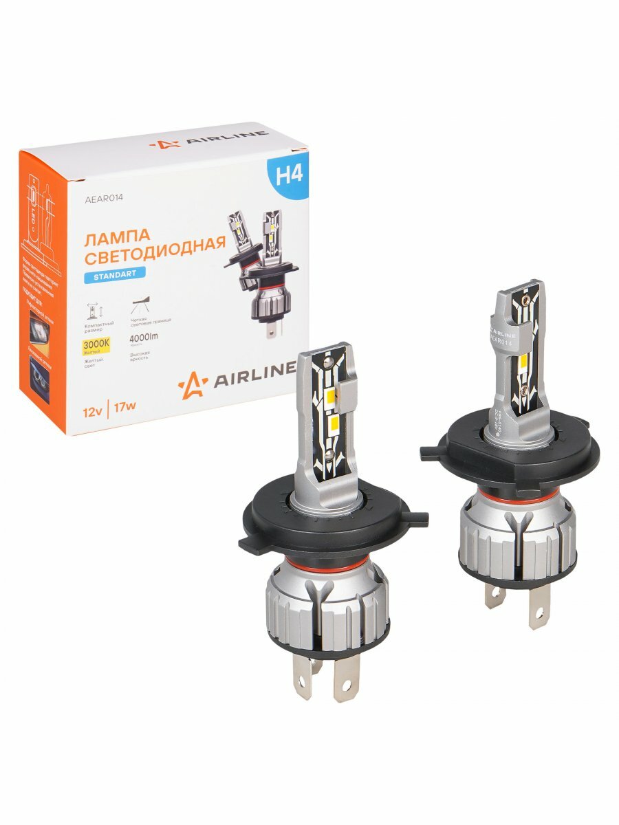 Лампа светодиодная 2 шт для рефлекторной/линзованной оптики 12 В, 17 Вт, H4, 3000 К, 4000 Лм AIRLINE AEAR014: сравнение цен, характеристики, фото, актуальное наличие и цены.