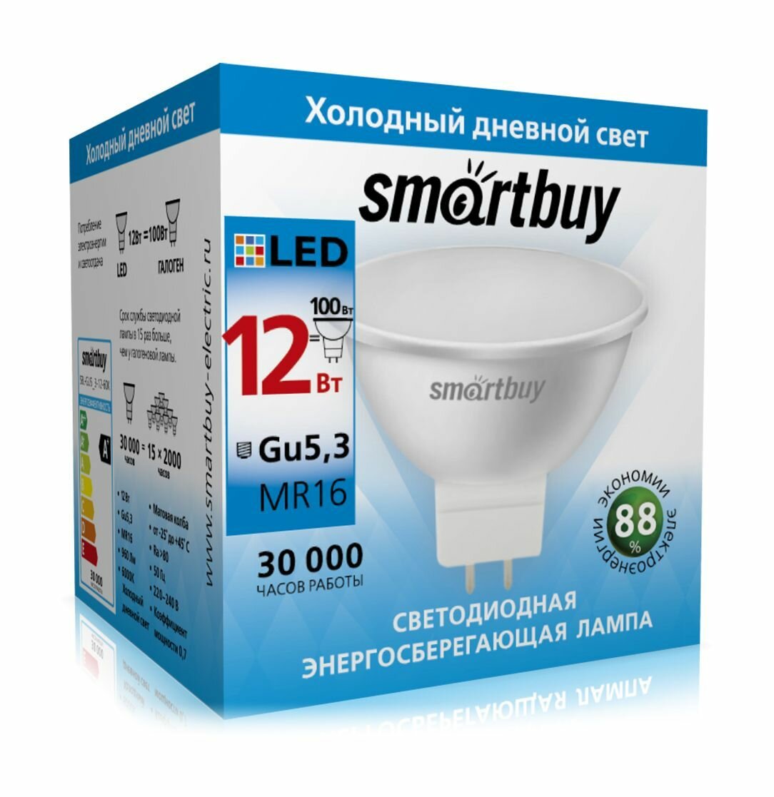 Лампа светодиодная (6 штук) SmartBuy SBL-GU5_3-12, GU5.3, MR16, 12 Вт, 6000 К: сравнение цен, характеристики, фото, актуальное наличие и цены.