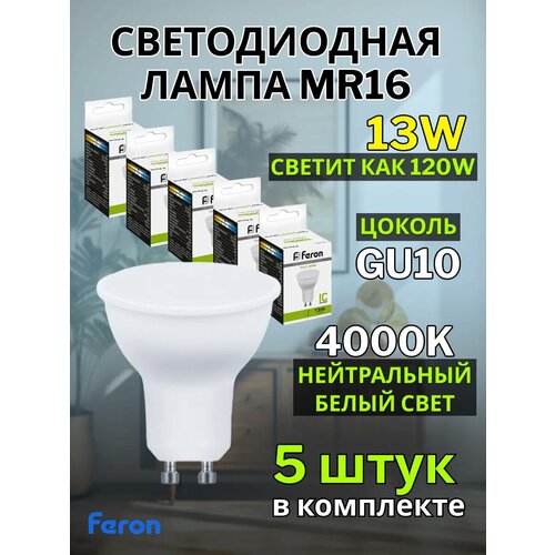 Купить Лампа светодиодная FERON LB-960, GU10, 13W, 4000K, белый свет, 5 шт с доставкой по всей России. Лампа светодиодная FERON LB-960, GU10, 13W, 4000K, белый свет, 5 шт: сравнение цен, характеристики, фото, актуальное наличие и цены.