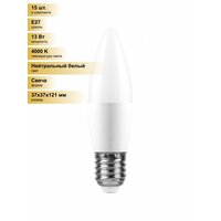 (15 шт.) Светодиодная лампочка Feron свеча C37 E27 13W(1130lm) 4000K 4K матовая 121×37 LB-970 38111 Нейтральный белый. Цоколь E27: сравнение цен, характеристики, фото, актуальное наличие и цены.