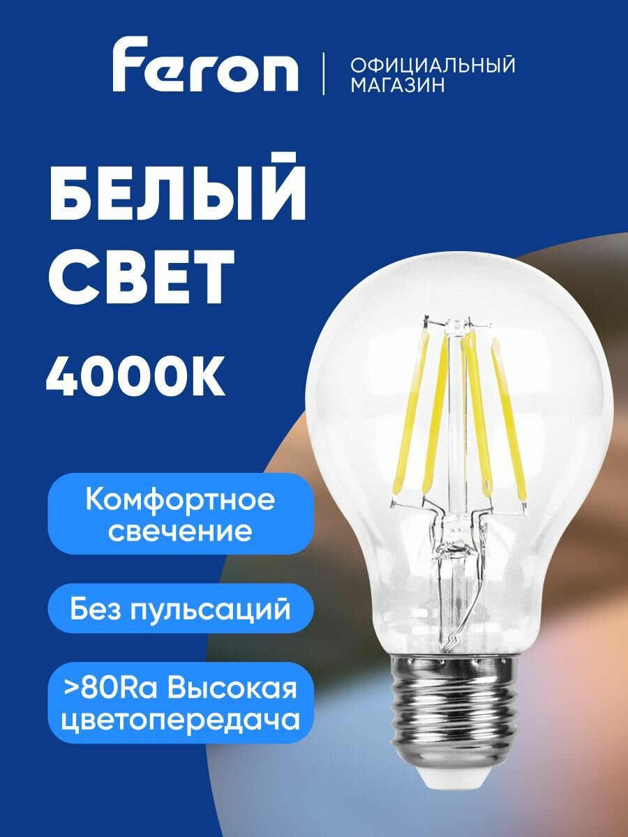 Лампа светодиодная филаментная E27 7 Вт A60 шар груша нейтральный белый свет 4000K Feron LB-57 25570, упаковка 10 штук: сравнение цен, характеристики, фото, актуальное наличие и цены.