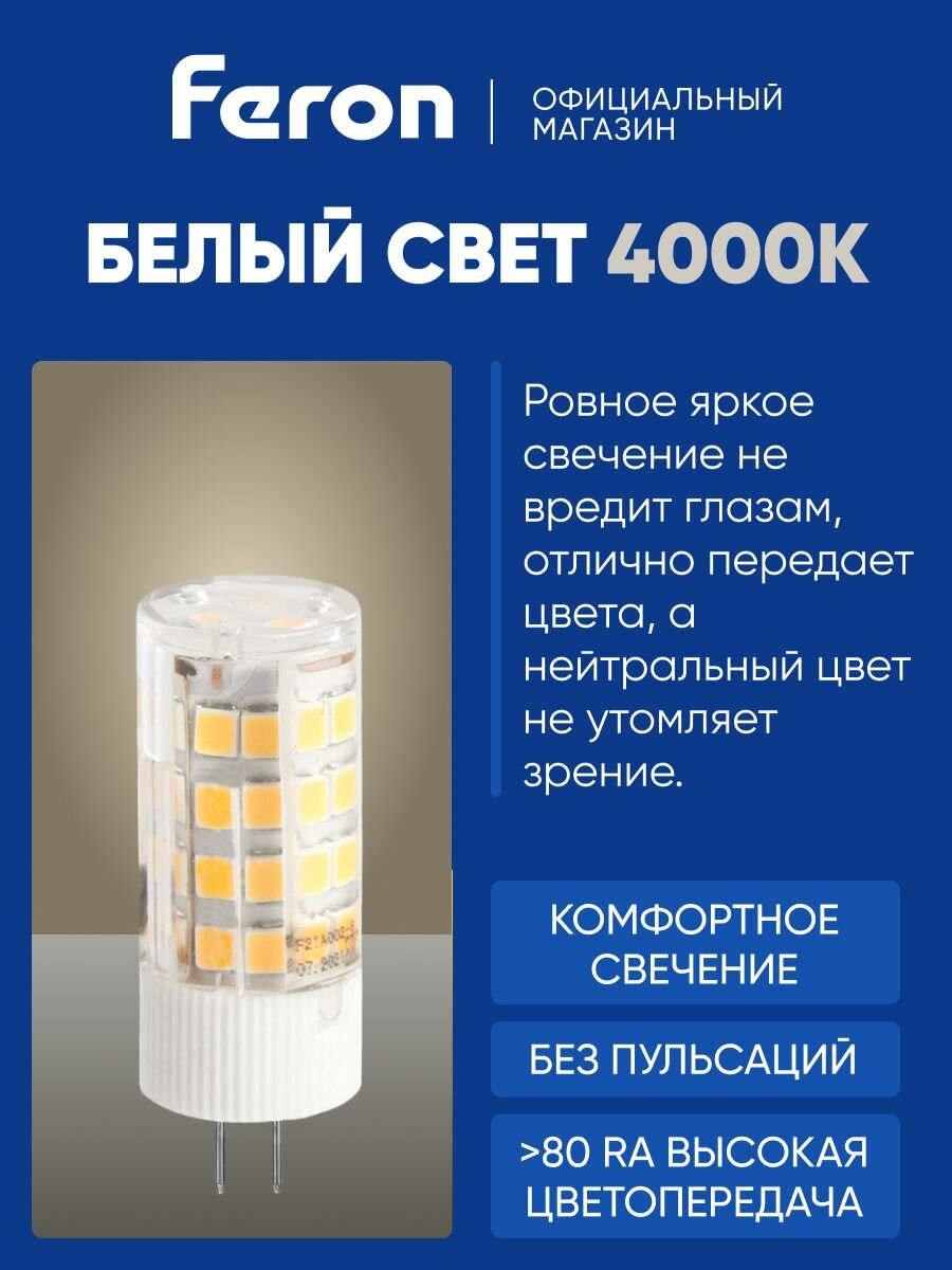 Лампа светодиодная G4 5W JCD капсульная нейтральный белый свет 4000K Feron LB-432 25861, упаковка 10 штук: сравнение цен, характеристики, фото, актуальное наличие и цены.