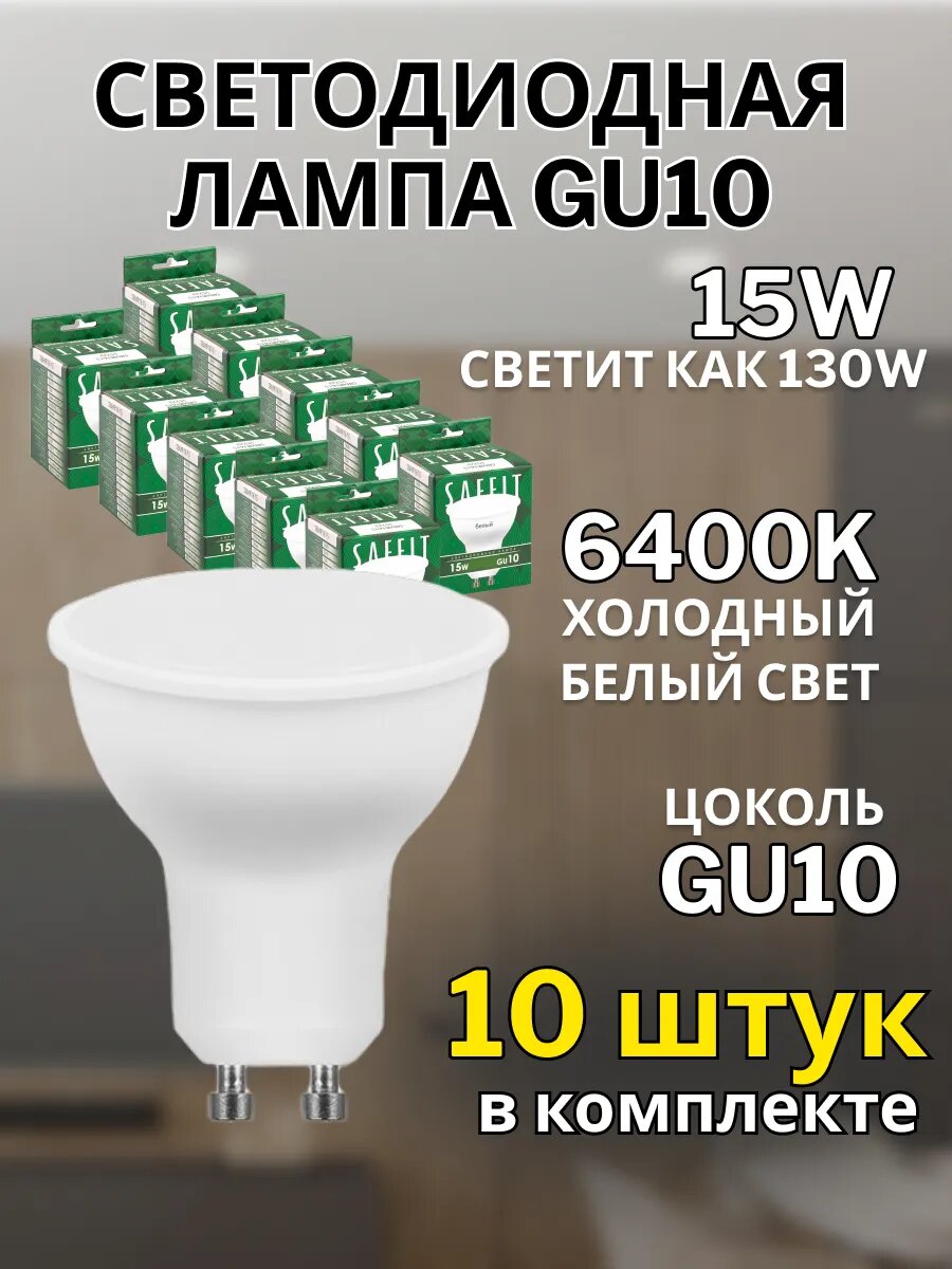 Лампа светодиодная GU10 15W 6400К 10 шт: сравнение цен, характеристики, фото, актуальное наличие и цены.