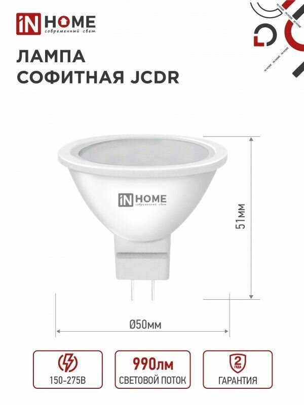 Лампа SB10 LED-JCDR-VC от In Home - это сочетание качества, надежности и энергосбережения.