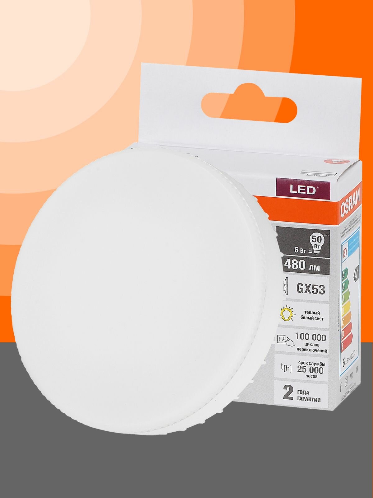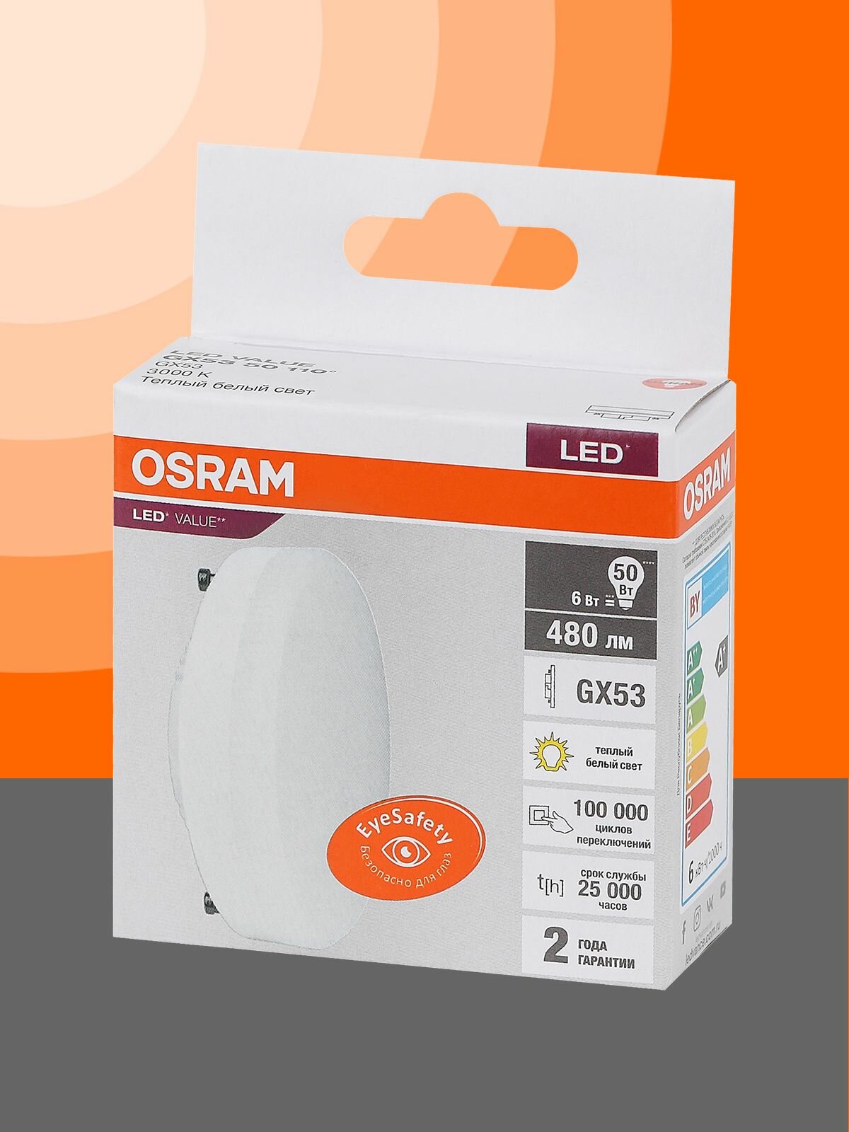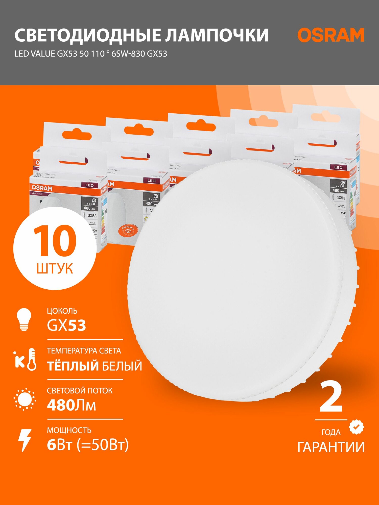 Купить Лампа светодиодная GX53 Osram LED Value GX 480лм 6Вт 3000К теплый свет, 10 шт с доставкой по всей России.