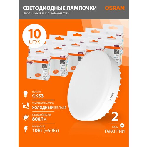 Лампа светодиодная GX53 OSRAM LED Value GX 800лм 10Вт замена 75Вт 6500К холодный свет, 10 шт: сравнение цен, характеристики, фото, актуальное наличие и цены.