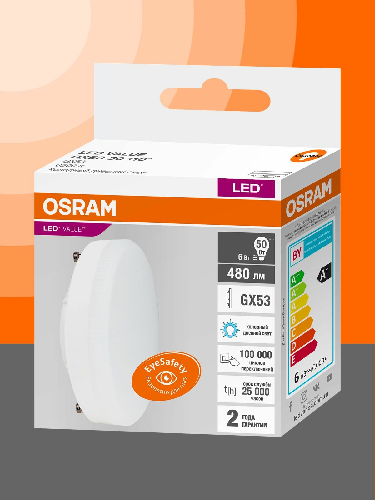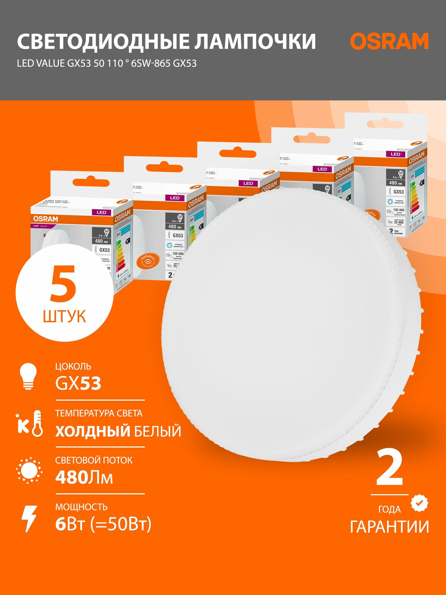 Лампа светодиодная GX53 Osram LED Value GX53 480лм 6Вт 6500К холодный свет, матовая, 5 шт: сравнение цен, характеристики, фото, актуальное наличие и цены.