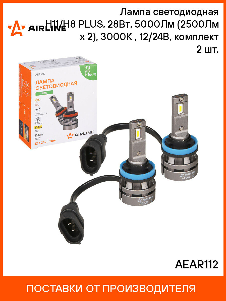 Лампа светодиодная 2 шт для рефлекторной/линзованной оптики 12/24 В, 28 Вт, H11/H8, 3000 К, 5000 Лм AIRLINE AEAR112: сравнение цен, характеристики, фото, актуальное наличие и цены.
