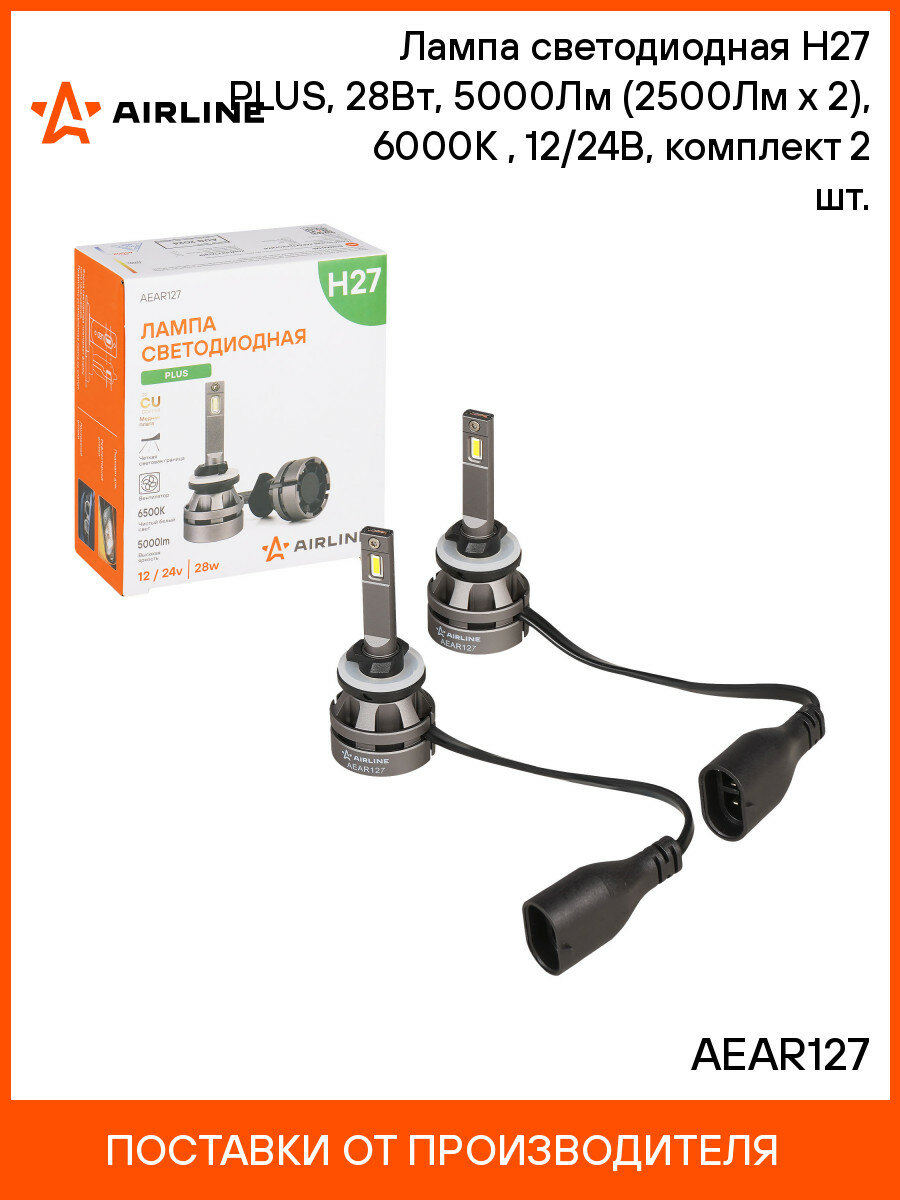 Лампа светодиодная 2 шт для рефлекторной/линзованной оптики 12/24 В, 28 Вт, H27, 6500 К, 5000 Лм AIRLINE AEAR127: сравнение цен, характеристики, фото, актуальное наличие и цены.