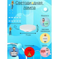 Купить General, Лампа светодиодная, Комплект из 10 шт, 15 Вт, Цоколь GX53, 6500К, Форма лампы Шайба, GX53 с доставкой по всей России.