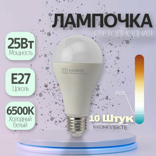 Лампа светодиодная LED-A65-VC 25Вт 230В Е27 6500К 2380Лм IN HOME (10шт): сравнение цен, характеристики, фото, актуальное наличие и цены.