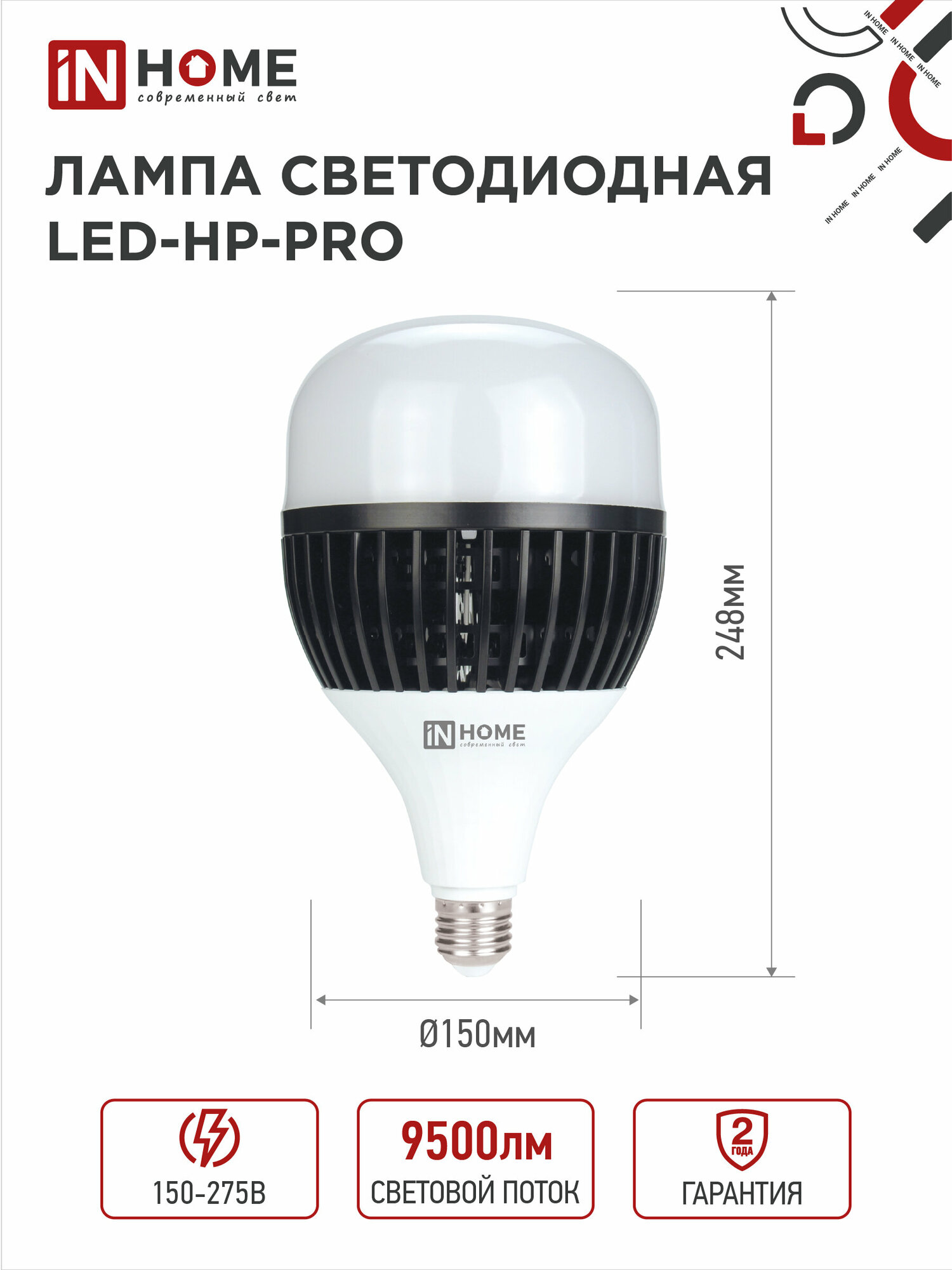 Купить Лампа светодиодная LED-HP-PRO 100Вт 6500К холод. бел. E27 9000лм 150-275В с адаптером E40 IN HOME 4690612035697(3 штук.) с доставкой по всей России. Лампа светодиодная LED-HP-PRO 100Вт 6500К холод. бел. E27 9000лм 150-275В с адаптером E40 IN HOME 4690612035697(3 штук.): сравнение цен, характеристики, фото, актуальное наличие и цены.