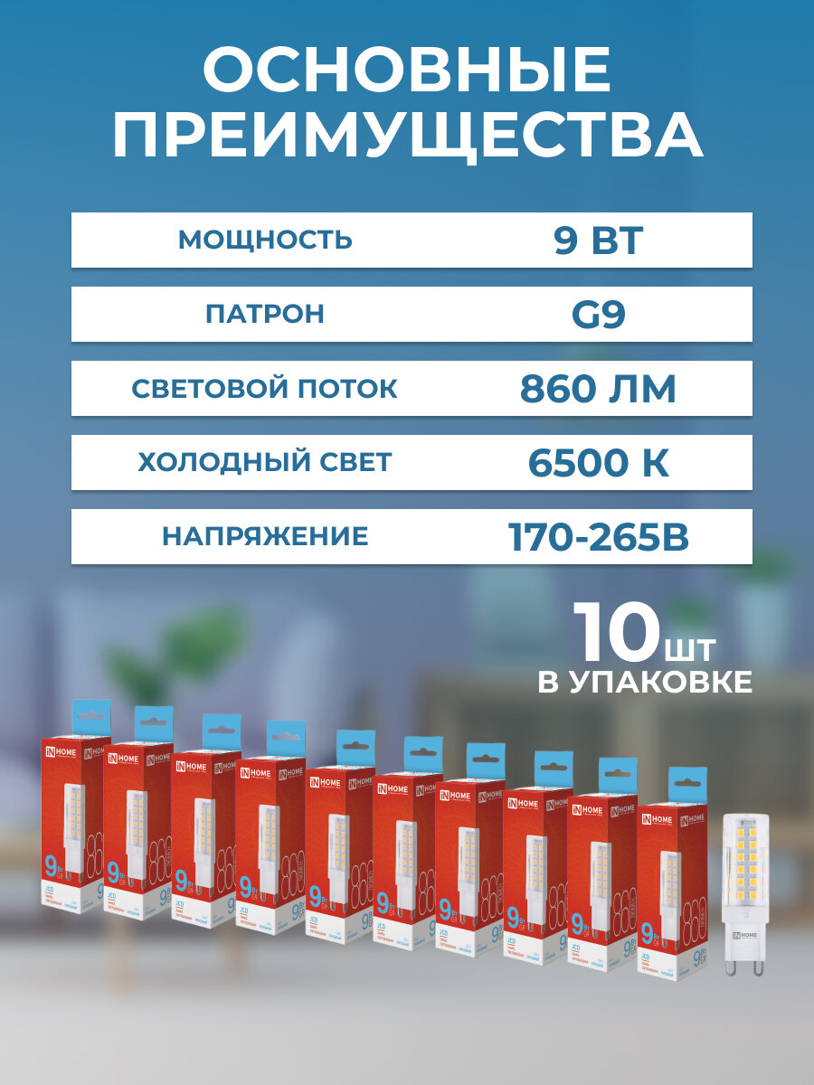 Светодиодная лампа IN HOME LED-JCD 9Вт является отличным выбором для общего освещения, обеспечивая яркий и комфортный свет, а также помогая снизить энергозатраты и экономить деньги.