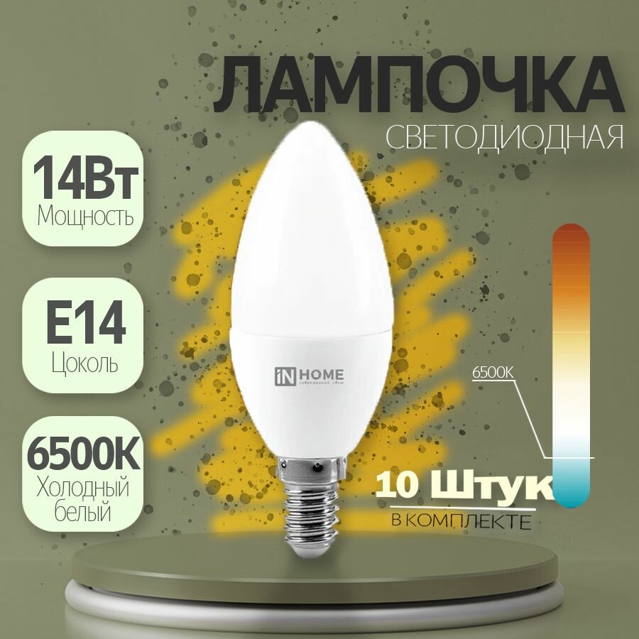 Купить Лампа светодиодная LED-СВЕЧА-VC 14Вт 230В E14 6500K 1330Лм IN HOME (10шт) с доставкой по всей России. Лампа светодиодная LED-СВЕЧА-VC 14Вт 230В E14 6500K 1330Лм IN HOME (10шт): сравнение цен, характеристики, фото, актуальное наличие и цены.