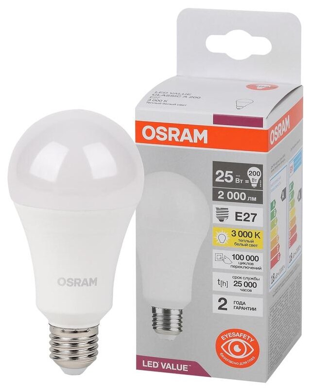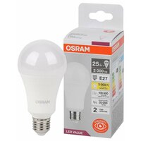 Лампа светодиодная LED Value 25Вт A матовая 3000К тепл. бел. E27 2000лм угол пучка 180град. 220-240В пластик (замена 200Вт) OSRAM 4058075696716(5 штук.): сравнение цен, характеристики, фото, актуальное наличие и цены.
