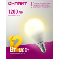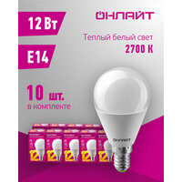 Лампа светодиодная онлайт 90 060, 12 Вт, шар Е14, теплый свет 2700К, упаковка 10 шт.: сравнение цен, характеристики, фото, актуальное наличие и цены.