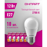 Лампа светодиодная онлайт 90 063, 12 Вт, шар Е27, теплый свет 2700К, упаковка 10 шт.: сравнение цен, характеристики, фото, актуальное наличие и цены.