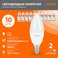 Купить Лампа светодиодная E14 OSRAM LED Value B, 560 лм, 7Вт, 4000К, нейтральный свет, Свеча, 10 шт с доставкой по всей России.