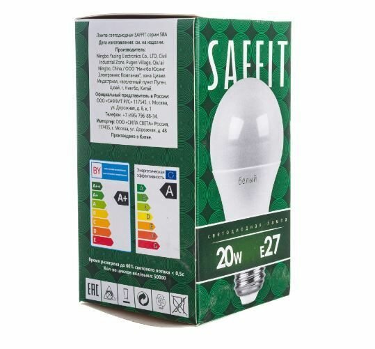 Лампа светодиодная 20W 6400К E27 шар белый дневной свет Saffit SBA6020 55015 (10 штук): сравнение цен, характеристики, фото, актуальное наличие и цены.