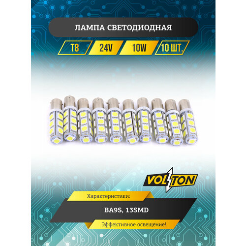 VOLTON Лампа светодиодная Т8 (BA9S) 24V 10W 13SMD - это небольшой источник света, который используется в автомобильной электронике. Она имеет размеры, соответствующие цоколю Т8 и может использоваться в различных устройствах.