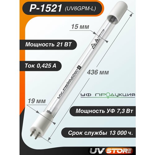 Wonder T521, Aquapro UV-6GPM-L, GPH 436T5L/4P 21W, UV-6GPM-L, ДБ 21, Waterstry AP 6GPM, UVL6AP25W, Wonder light GPH436, UV lamp RUV76-25/90-25, UVL 20 WL, uv6gpm, uv6gpm l
