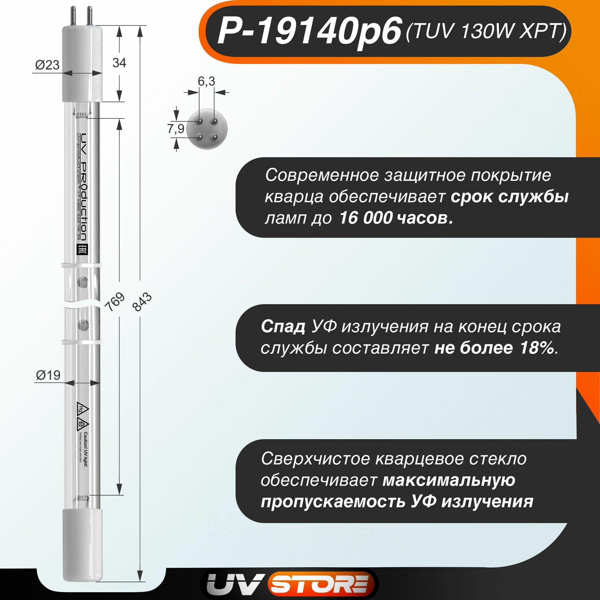 По своим характеристикам УФ Лампа P-19140p/6 130Вт аналогична лампам TUV 130W XPT SE, UV-C PRO 150000, BWT 130W, 871150020943605, van erp 150000