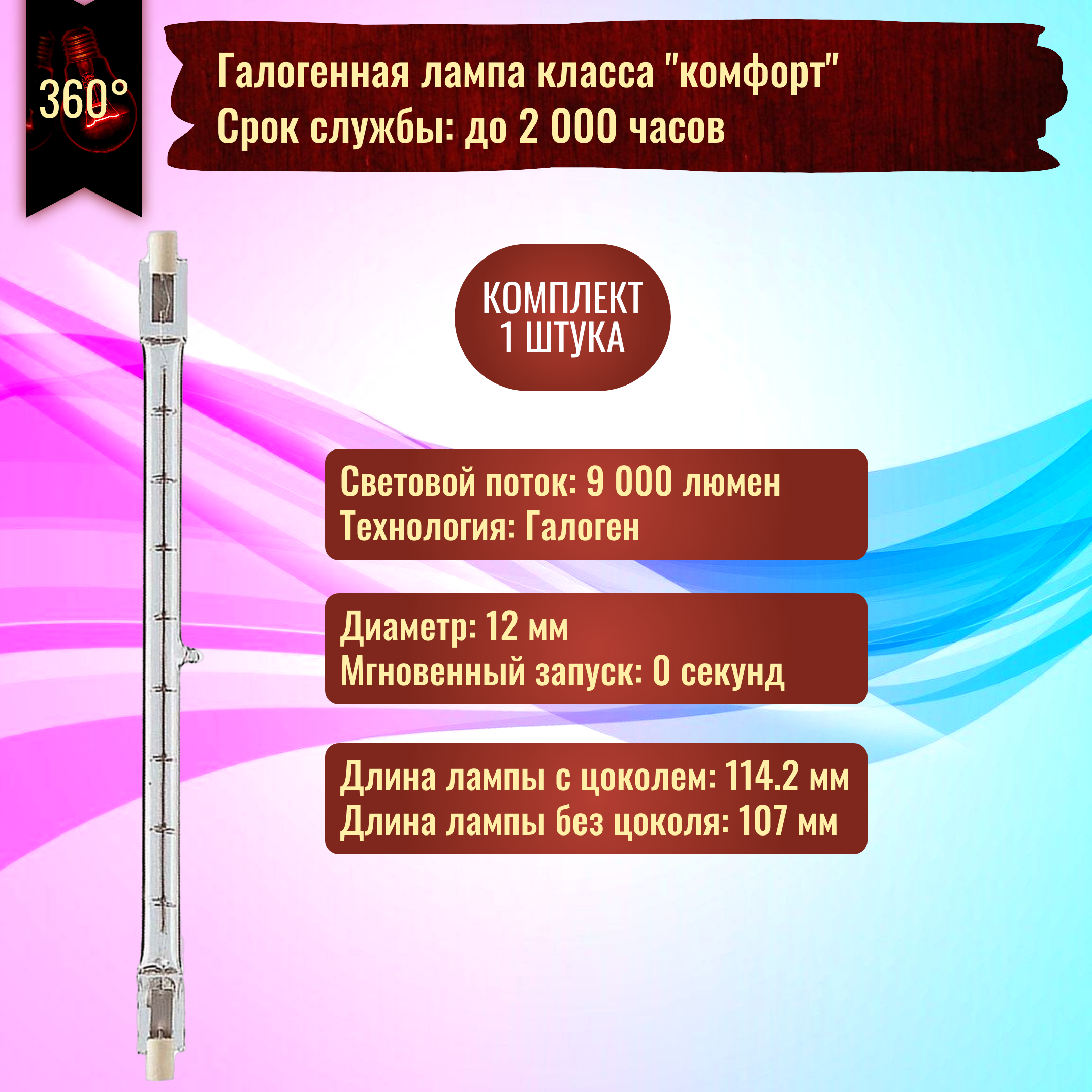 Лампочка Foton BLR117 500w 117.6mm 220v R7s галогенная, теплый белый свет