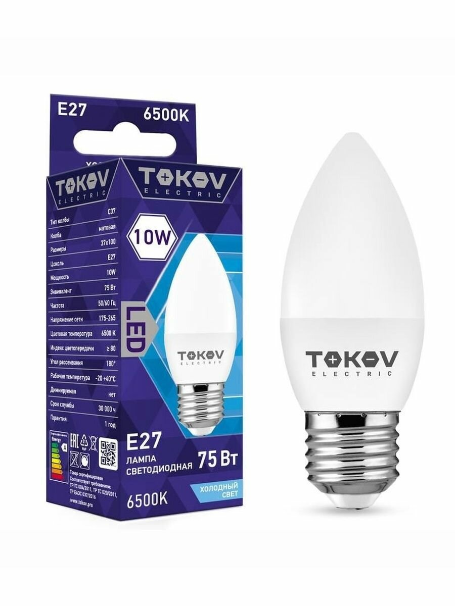 Купить Лампочка светодиодная 10Вт С37 6500К Е14 (10 шт.) 176-264В TOKOV ELECTRIC TKE-C37-E14-10-6.5K с доставкой по всей России. Лампочка светодиодная 10Вт С37 6500К Е14 (10 шт.) 176-264В TOKOV ELECTRIC TKE-C37-E14-10-6.5K: сравнение цен, характеристики, фото, актуальное наличие и цены.