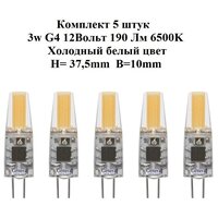 General, Лампа светодиодная 12 вольт, Комплект из 5 шт, 3 Вт, Цоколь G4, 6500К, Форма лампы Капсула, G4: сравнение цен, характеристики, фото, актуальное наличие и цены.