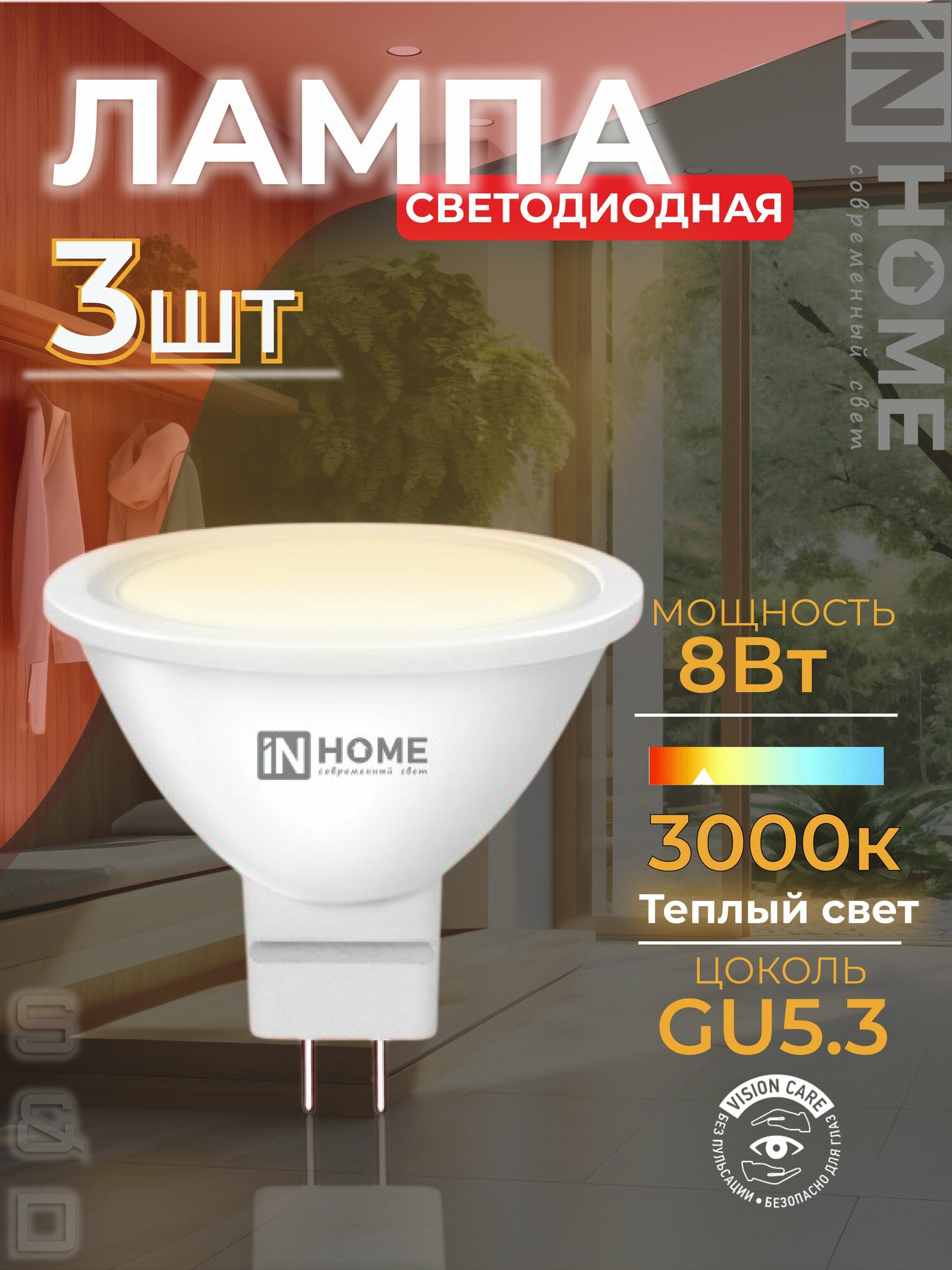 Купить Лампочка светодиодная 3 шт GU5.3 3000К 990 Лм 11 Вт лампа теплый свет 230 В IN HOME с доставкой по всей России. Лампочка светодиодная 3 шт GU5.3 3000К 990 Лм 11 Вт лампа теплый свет 230 В IN HOME: сравнение цен, характеристики, фото, актуальное наличие и цены.