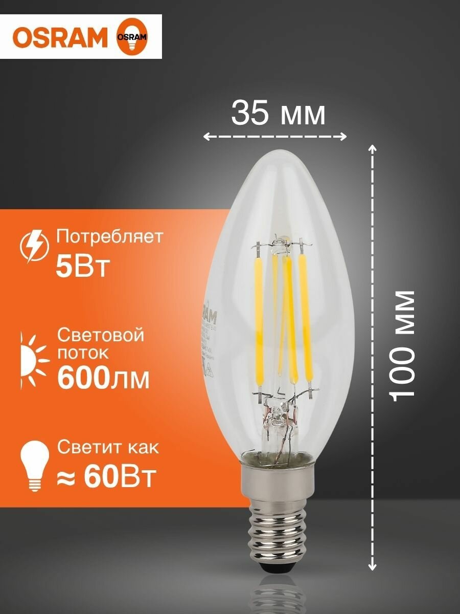 Лампа филаментная e14: осветите пространство экономичным, комфортным и долговечным светом. Выбирайте комплект ламп OSRAM е14 и наслаждайтесь надежным освещением каждый день!