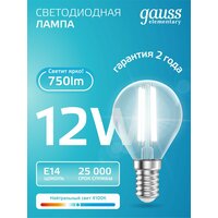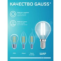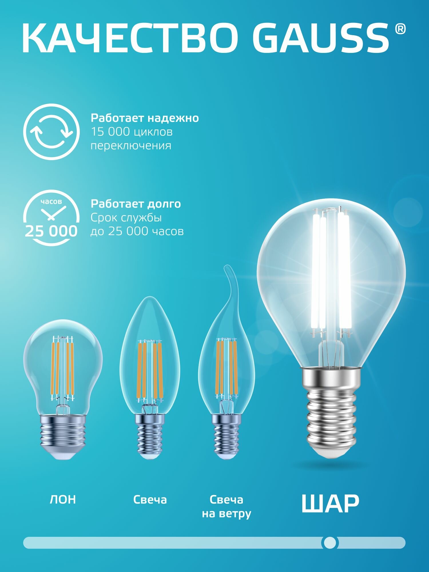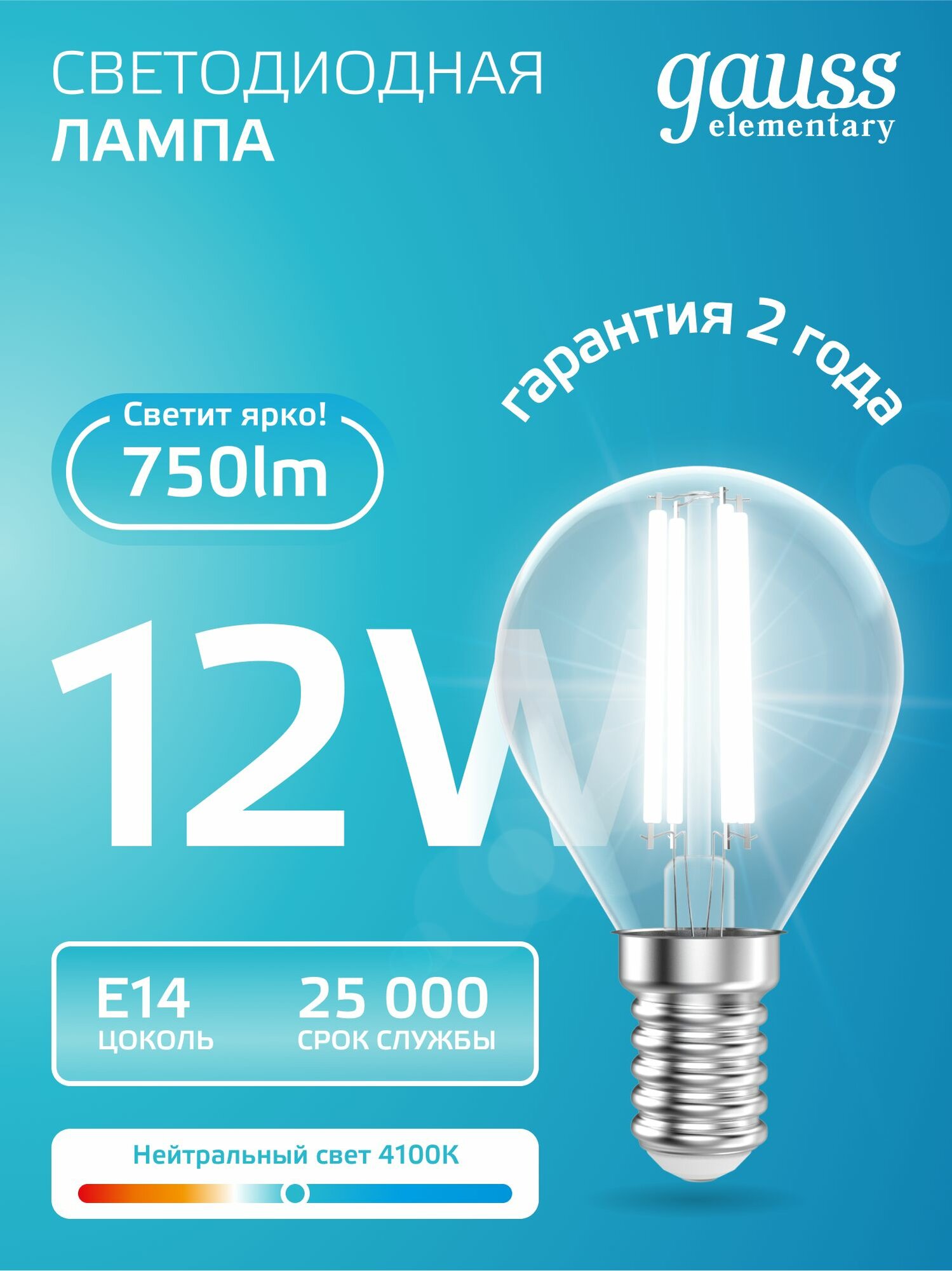 Лампочка светодиодная E14 Шар 12W нейт белый свет 4100К упаковка 10 шт. Gauss Elementary Filament: сравнение цен, характеристики, фото, актуальное наличие и цены.