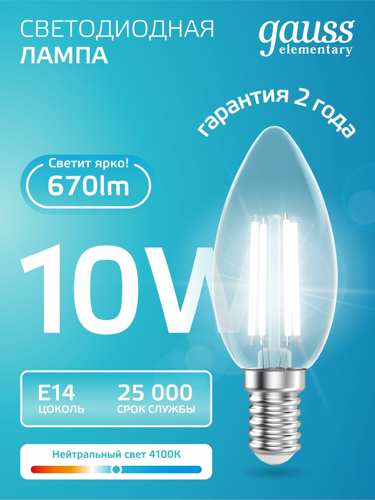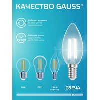 Лампочка светодиодная E14 Свеча 10W нейт белый свет 4100К упаковка 10 шт. Gauss Elementary Filament: сравнение цен, характеристики, фото, актуальное наличие и цены.