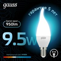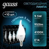 Лампочка светодиодная Е14 Свеча на ветру 9.5W нейтр белый свет 4100К упаковка 10 шт. Gauss Black: сравнение цен, характеристики, фото, актуальное наличие и цены.