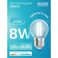 Лампочка светодиодная E27 Шар 8W нейт белый свет 4100К упаковка 10 шт. Gauss Elementary Filament: сравнение цен, характеристики, фото, актуальное наличие и цены.