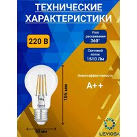 Лампочки филаментные Лампы прозрачные Филамент А60 E27 Наименование GLDEN-A60S-17-230-E27-4500 Цоколь E27 Цветовая тем-ра K 4500 Мощность Вт 17 Световой поток лм 1510 Угол рассеивания 360 Размеры мм 60*105 Комплект из 10 шт.