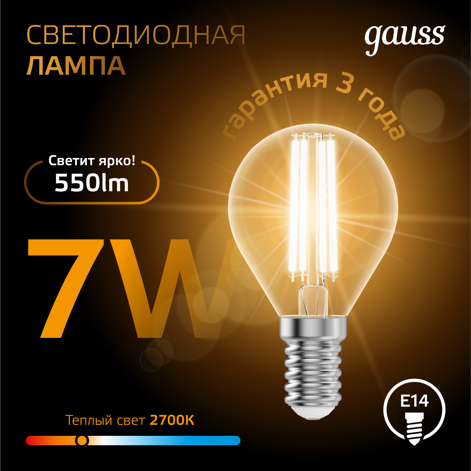 Лампочка светодиодная Gauss Filament 7В эквивалент 60В 2700K 550Лм E14 филаментная шар 105801107 (комплект из 3 шт.): сравнение цен, характеристики, фото, актуальное наличие и цены.