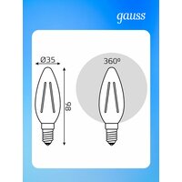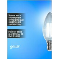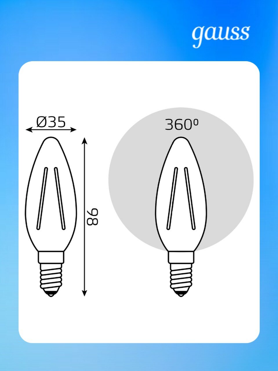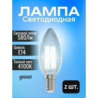 Лампочка светодиодная Gauss Filament 7Вт, 4100K, 580Лм, E14, нейтральный свет, филаментная свеча (комплект из 2 шт.): сравнение цен, характеристики, фото, актуальное наличие и цены.